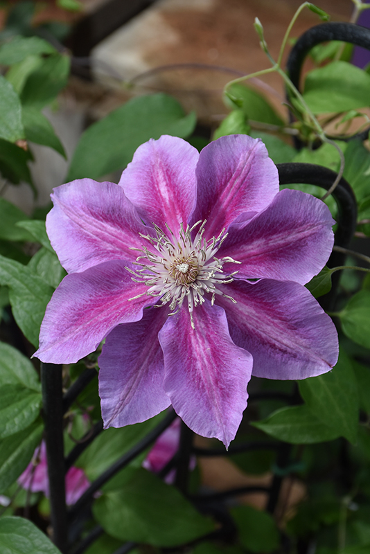A beautiful climber that is smothered in large fuscia to lilac-purple flowers in early summer with repeat bloom throughout the season; flowers are unbelievably large and prominent