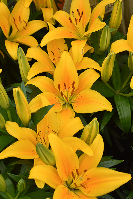This variety is a compact lily that bears well formed, upward facing, bright yellow blooms, perfect for containers or massing along borders; they are also known to have multiple blooms per stem