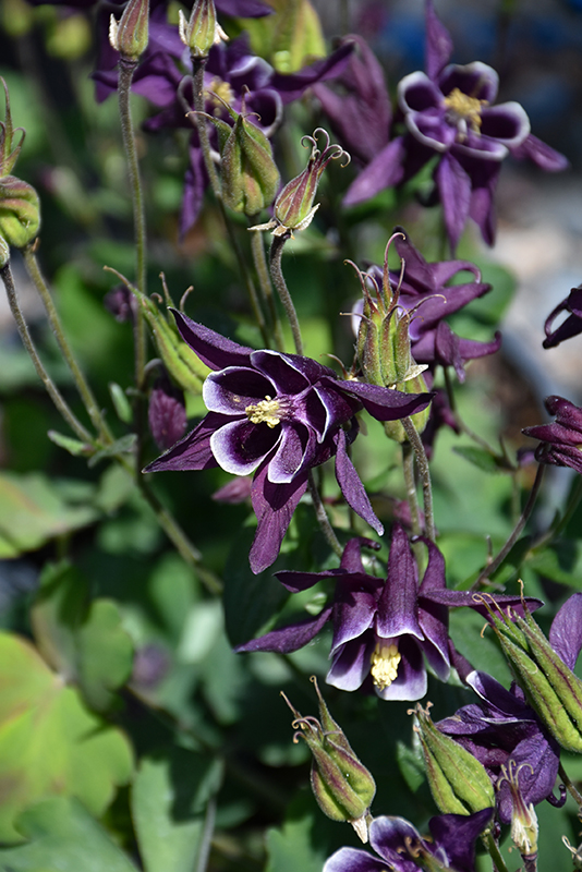 Winky Purple and White Columbine features showy nodding purple bell-shaped flowers with blue overtones and white centers at the ends of the stems from late spring to early summer, which emerge from distinctive deep purple flower buds. The flowers are excellent for cutting. Its lobed compound leaves remain green in color throughout the season.