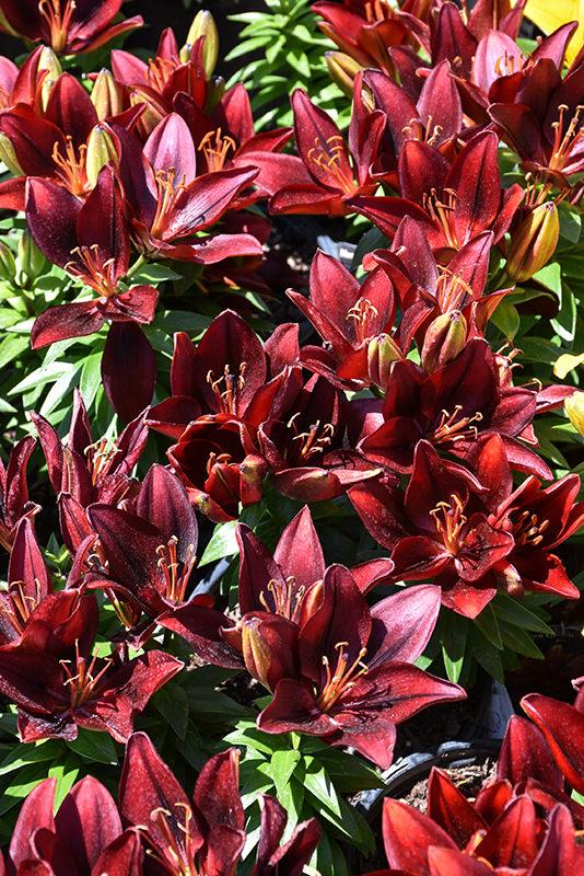 Lily Looks™ Tiny Rocket Lily features bold cherry red trumpet-shaped flowers with dark red overtones and black spots at the ends of the stems from late spring to mid summer. The flowers are excellent for cutting. Its glossy narrow leaves remain green in color throughout the season.