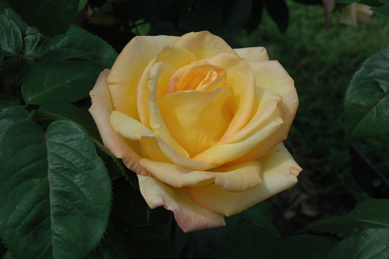 A unique rose with typical tea flowers in a rich gold, but with the slightest hint of copper-peach along the edges of the petals to lend a touch of elegance; all roses need full sun and well-drained soil